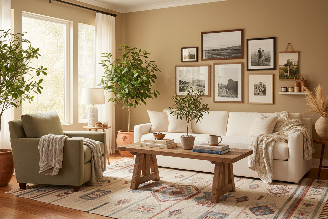 Round Center Table with Tapered Legs | Honey Brown Wood & Curved Transitions
