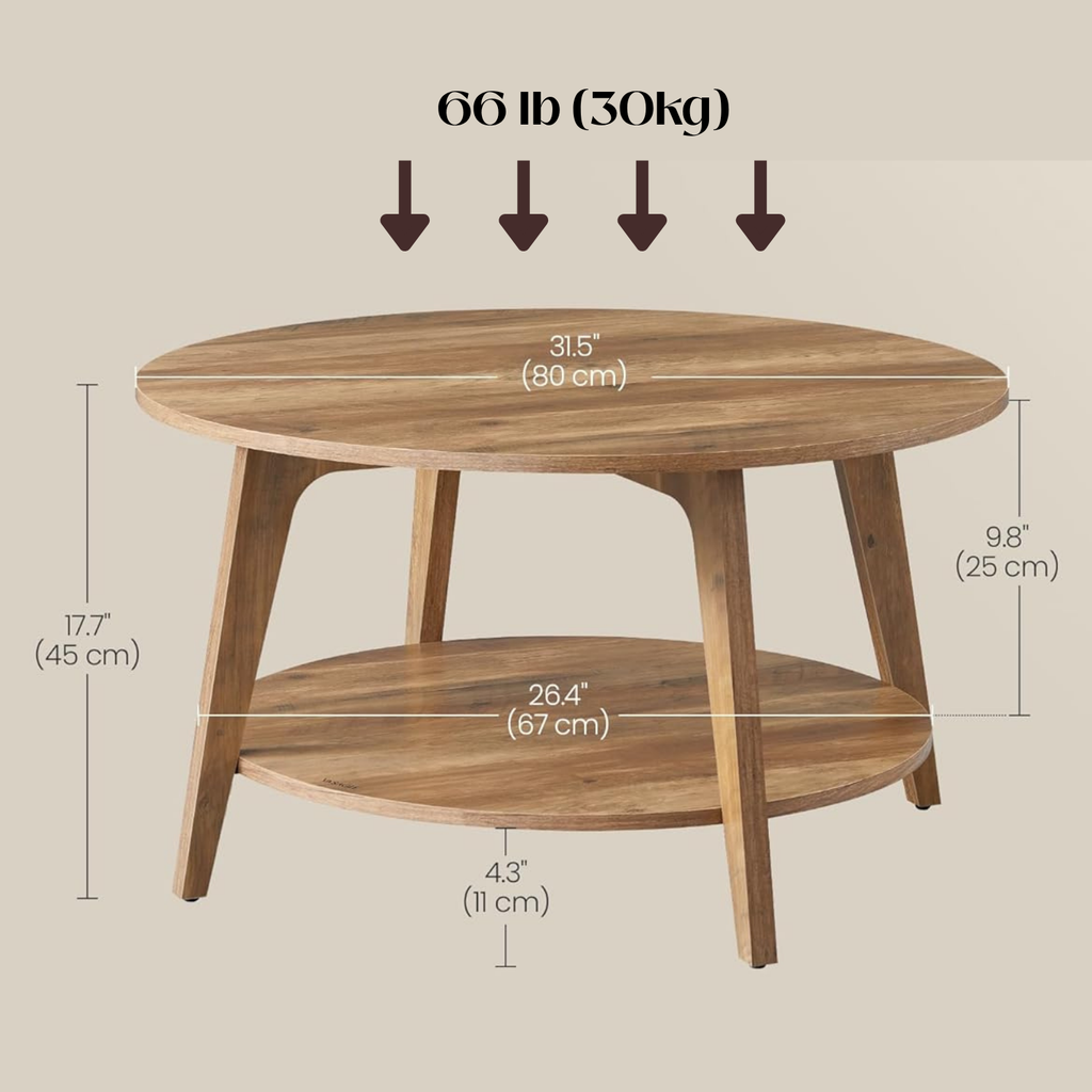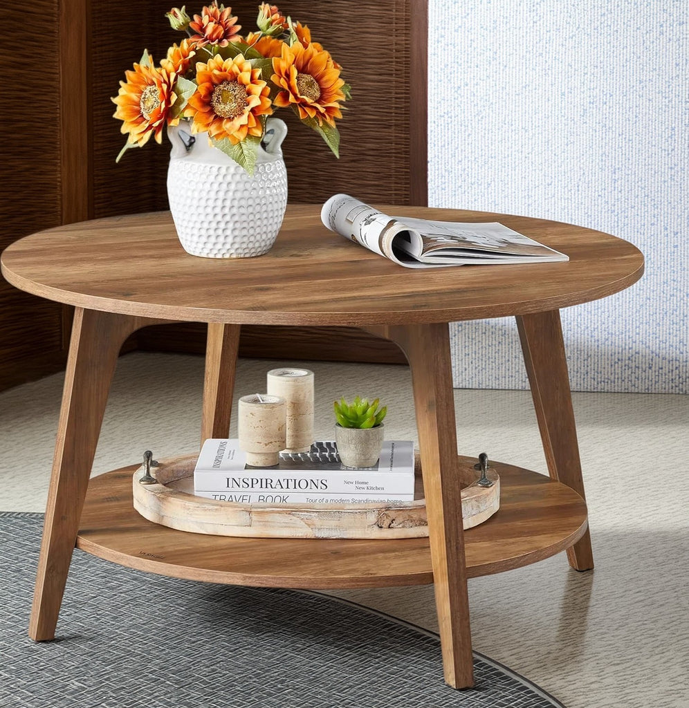 Discover the perfect centerpiece for your living space. This 31.5-inch Round Coffee Table features the timeless aesthetic of mid-century modern design, instantly elevating your home with its warm Honey Brown finish, tapered legs, and smooth, curved transitions.